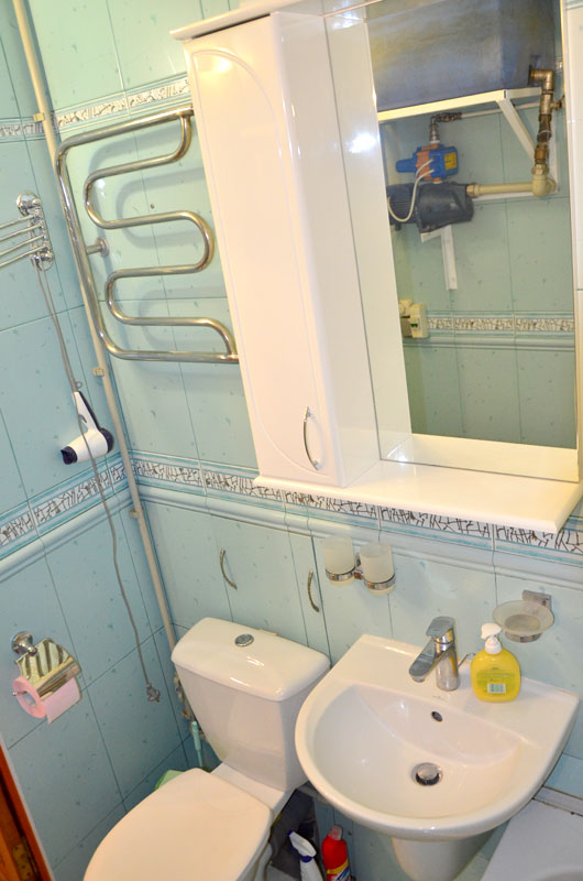Расположение: центр города, перекрёсток улиц 40-лет Октября и Тираспольской на 4-м этаже 5-этажного дома. Дом не оборудован лифтом. Вода круглосуточно. Подогрев воды осуществляется газовой колонкой.