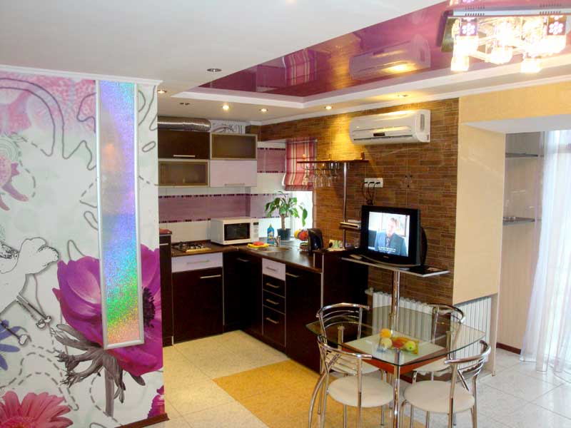 Квартира з оригінальними французькими стелями в спокійних тонах. З вікон панорамний вид на парк. Інтер'єр квартири виконаний в стилі з елементами HI-TECH.