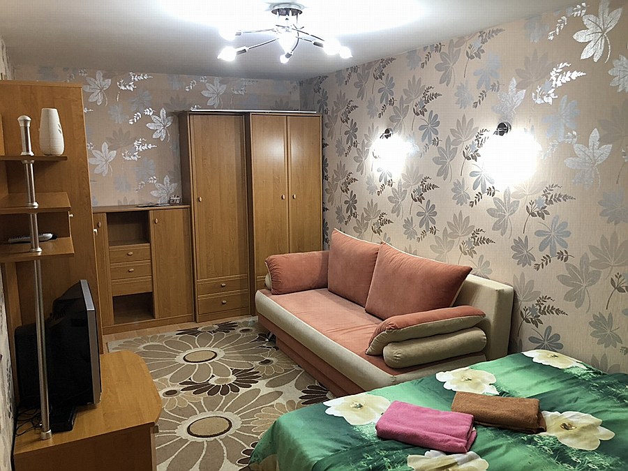 Расположение: центр города, 1-й этаж 5-этажного дома, 40 лет Октября 17. Вода круглосуточно. Подогрев воды осуществляется газовой колонкой.